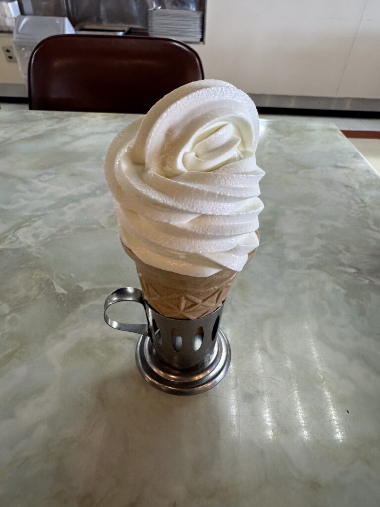 こちらで売っているソフトクリームは、なんと「わりばし」で食べるんです!!